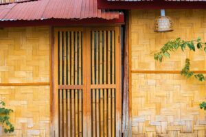 Bamboo replaces timber frames properly to work. Mat shutters fixed to bamboo frame bamboo boards fixed to the frame which wall can be utilized as a door. A small frame to the top of the wall can serve as windows.
