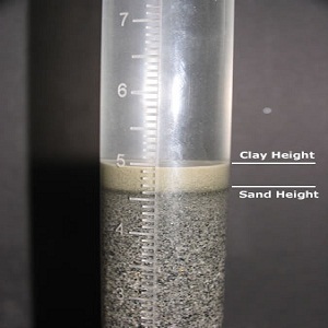 • Measure the thickness of the silt layer & the height of the sand. The silt content can be calculated as follows: