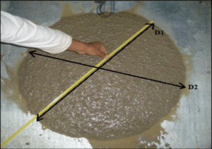 - After concrete stops flowing, measure the average flow diameter of concrete.