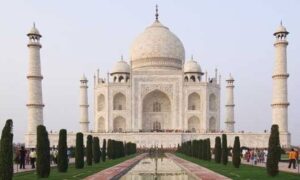 Since its construction, the Taj Mahal has attracted numerous visitors. Today the Taj Mahal attracts 2 to 3 million visitors every year, of whom 2,00,000 come from overseas, making it the most popular tourist attraction in India. Most tourists visit during the cooler months of October, November, and February. Tourists come from around the world to feel the aura of eternal love that surrounds the Taj Mahal. The Taj Mahal is one of India’s largest tourist-revenue earners & no tourist image predominates as that of the visitor snapped in front of the Taj. Polluting traffic is not allowed near the complex and tourists must either walk from the car parks or catch an electric bus.