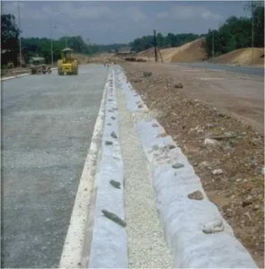Drainage: Geotextiles are used as filtering mechanisms for drainage in roads, highways, earth dams, reservoirs, retaining walls, drainage trenches, and many other applications.