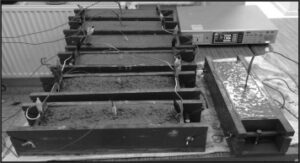The electrical curing can be done by passing an alternating current through the concrete itself between two electrodes either applied to the concrete surface or buried in.